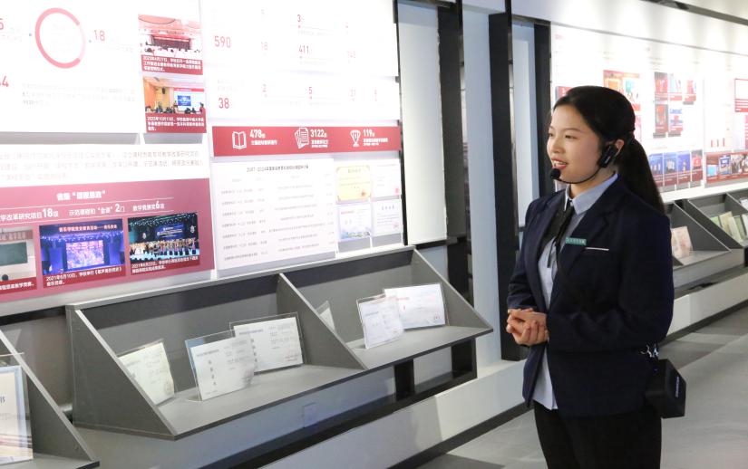 慢慢穿过时空长廊,学校的办学历程如画卷般展开。从新中国成立后的师范专科学校,到新世纪晋升本科一批招生;从3个国家级一流专业建设点,到19个硕士学位点。一代代师院人始终坚守师范教育本位,笃行着学校首任校长曾熙“以南方先贤之学术思想传道授业”的办学理念,与“百年师范”的庄严承诺,书写着教育报国的时代答卷。尾声部分,展示了以陶铸、黄克诚等为代表的大批杰出校友风采,以及各级领导对学校的亲切关怀。宣传片《时间的力量》循环播放,讲述着衡师百年学府的积淀与新生。最后参观结束时,同学们留下了“我们要做红色校史的传承者、师范精神的践行者”、“让青春在教育事业中绽放光彩”等真挚留言,无不诠释着新时代师院人的责任与担当。