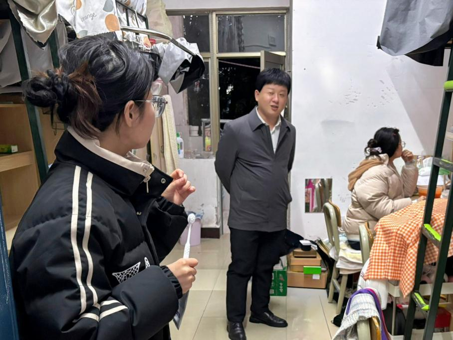 走访中,老师们细致询问同学们在住宿、饮食等方面的不适之处,耐心倾听大家遇到的困难和诉求。针对同学们提出的问题,刘灵婷副书记将切实可行的建议与解决方法化作关怀与鼓励,用心守护同学们的成长与发展,让宿舍成为舒心生活、暖心相伴的港湾。